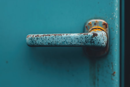 A detailed shot of a metallic locker handle under blue lighting, representing security, privacy, and protection, often associated with banking or safekeeping.