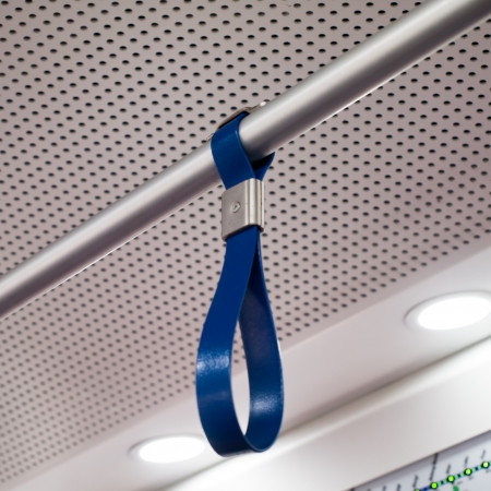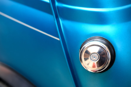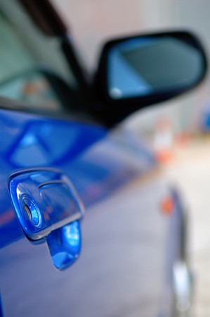 Modern blue car door handle close