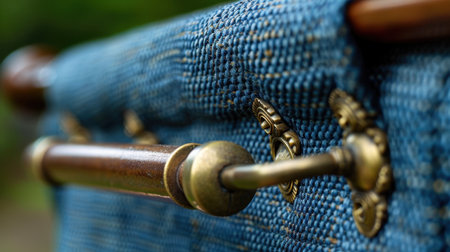 This image showcases an elegant close-up of textured fabric combined with a brass handle, highlighting intricate design elements on stylish outdoor furniture.