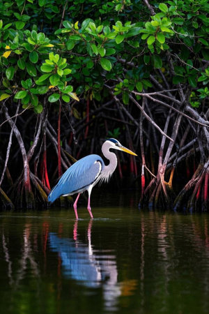 Great Blue Heron (Ardea herodias) in mangrove forest