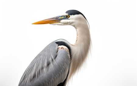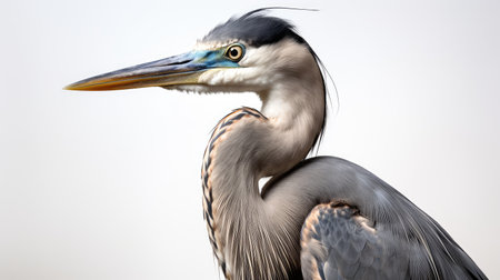 Elongated Bird heron closeup beak. Eye fishing. Generate Ai