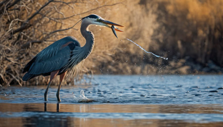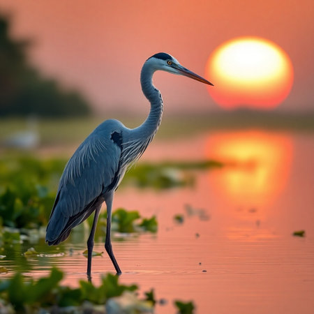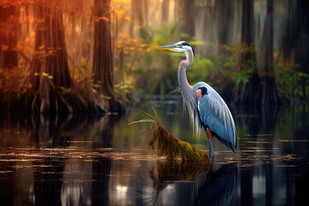 AI Generated. Heron sunrise wetlands autumn nature wildlife