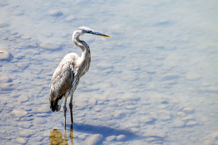 Great blue heron, Ardea herodias, in a shallow river, Costa Rica.