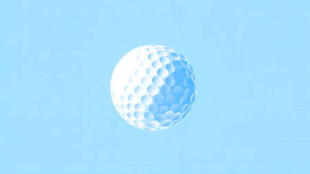 A solitary white golf ball rests against a vibrant blue backdrop, casting a distinct shadow that highlights its texture and form, ideal for sports themes.