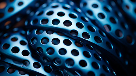 Extreme close-up of a vibrant blue sponge revealing its intricate cellular structure and numerous circular pores.