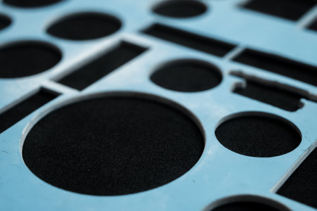 A clean and modern abstract background featuring a repeating pattern of triangular cutouts. The white surface has sharp, angular holes revealing a vibrant blue underneath. The lighting creates subtle shadows, adding depth and dimension to the geometric This crisp and minimalist composition offers a sense of order and visual intrigue.