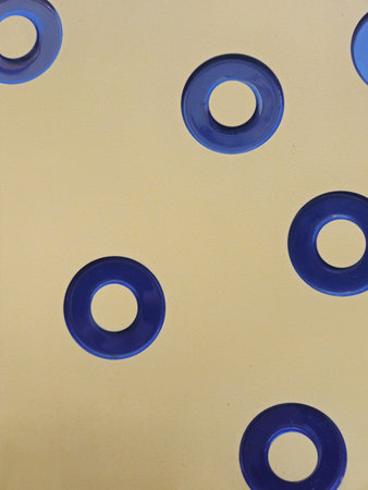 Digital image of close up of a blue tennis net with a blurred background, in a flat lay composition, with macro photography, from a low angle shot, with soft light, with professional color grading, as a stock photo, with high resolution, with sharp focus, with no contrast, with a natural look.