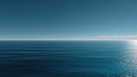 A breathtaking view of a vast ocean stretching to the horizon, under a clear blue sky. This image conveys serenity and tranquility, perfect for relaxation themes.