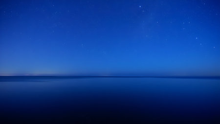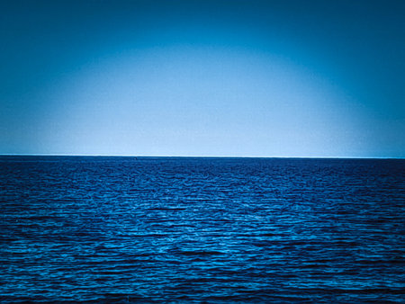 Experience the tranquility of a serene blue ocean horizon captured in this image. Perfect for backgrounds, this visual evokes peace and relaxation, ideal for any project.