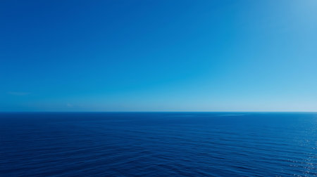 Experience the serene beauty of an expansive ocean horizon under a clear blue sky. This peaceful landscape creates a perfect backdrop for relaxation and tranquility.