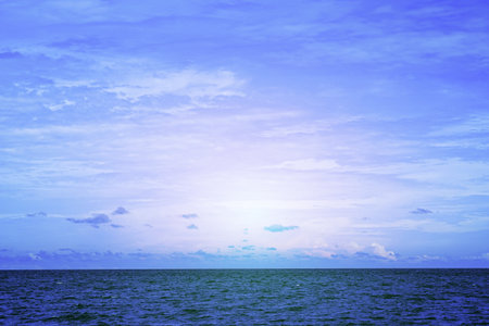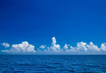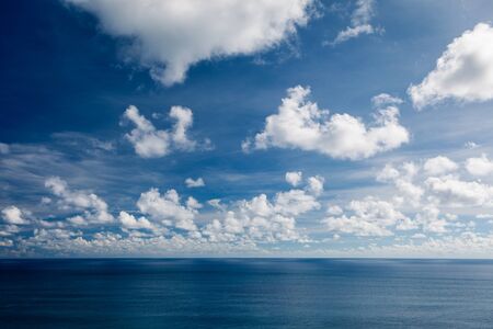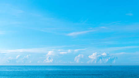Ocean skyline with blue sky and white cloudy, natural landscape background