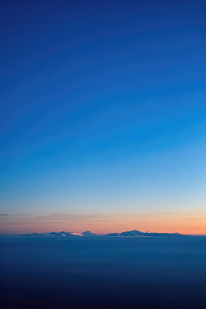 Beautiful gradient sky transitioning from dark blue to light blue with thin clouds at the horizon
