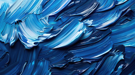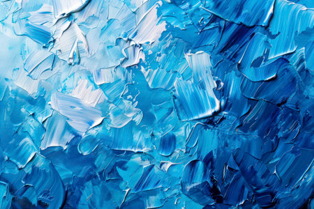 A close-up, abstract view of thick acrylic paint strokes in varying shades of blue and white. The textured surface of the canvas is visible beneath the impasto application of the paint. The strokes are applied diagonally, creating a sense of movement and depth. The contrast between the deep blues and bright whites adds a dynamic and vibrant to the artistic composition. This abstract background is creative and modern projects.