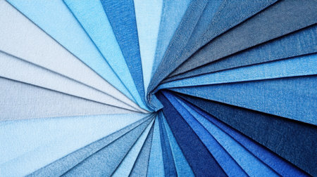 A stunning display of blue fabric textures arranged in a circular pattern, showcasing a variety of shades from light to dark. Perfect for design inspiration.