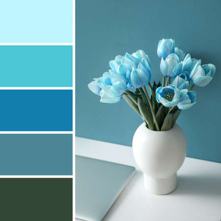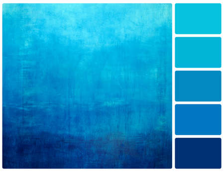 Hand drawn blue gradient background on wall. Colour palette with complimentary colour swatches