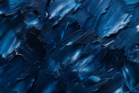 showcases thick, textured impasto brushstrokes of a deep, rich blue paint applied to a white canvas. The paint is applied with a heavy hand, creating visible ridges and valleys that catch the light, highlighting the tactile of the medium. The contrast between the dark blue and the bright white background is striking, emphasizing the bold and expressive nature of the close-up perspective reveals the intricate details of the paint application, offering a glimpse into the creative process.