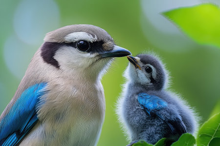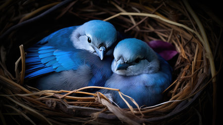 Bird jay nest. Wild baby fauna. Generate Ai