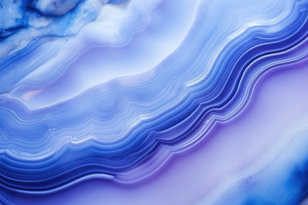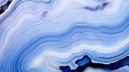 Close up of bright blue agate texture. Natural mineral background with wavy lines