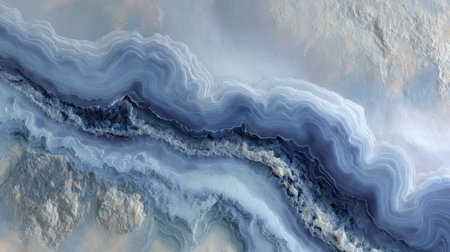 Explore a tranquil abstract landscape featuring flowing patterns of blue and gray tones, inspired by natural mineral formations and textures.