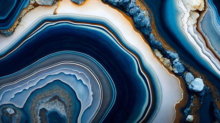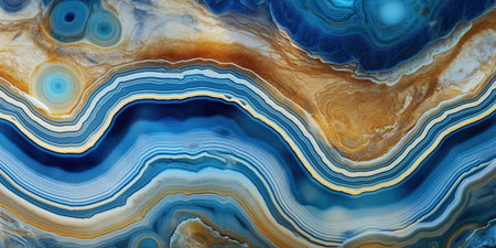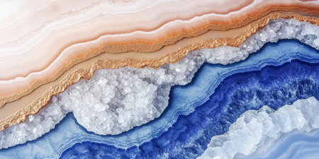 Abstract Agate and Geode Texture Blue, Gold, and Peach Hues with Crystalline Structure