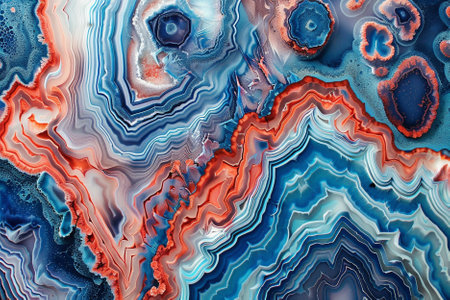 Abstract background of agate with red, blue and white colors.