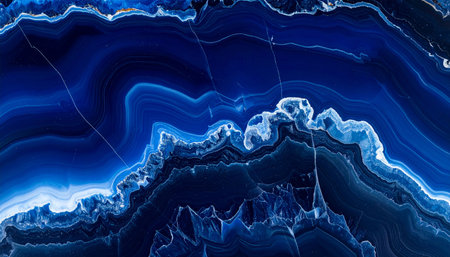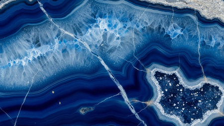 Close-up of a dark blue agate stone surface with white and gold accents and fractured details.