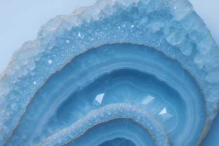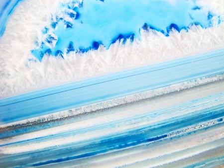 Macro shot of agate crystals on light blue agate background