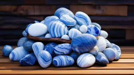 An AI generated illustration of A vibrant blue agate stone painting, with a detailed pattern that is eye-catching and aesthetically pleasing