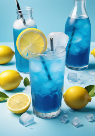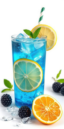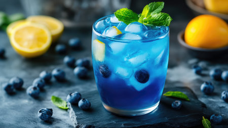 Refreshing blue lemonade with citrus fruits and berries for a vibrant summer drink