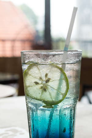 Blue hawaii soda with blueberry and lemon. Beverage for summer with white background.