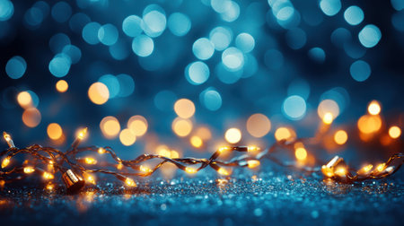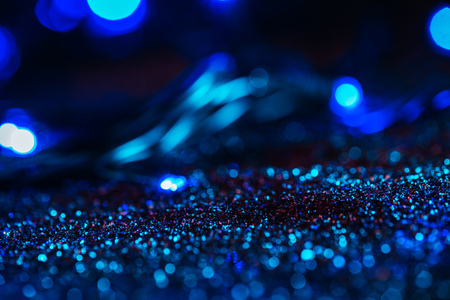 bright blue lights bokeh effect from festive garland light unfocused blurred abstraction