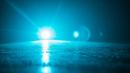 Blue bokeh lights create a calming atmosphere in a nighttime setting with soft glows and vibrant hues