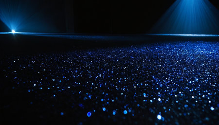 A vivid display of blue glitter sparkles glimmering in the light, creating a captivating bokeh effect. This enchanting background is perfect for a celebration or event