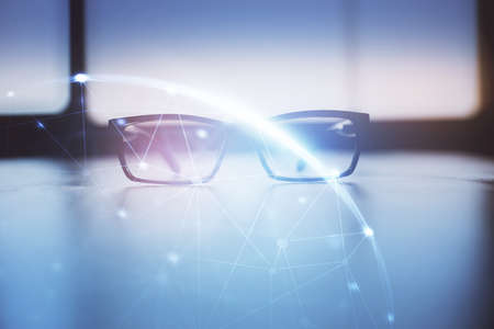 Smart glasses with a futuristic technology background