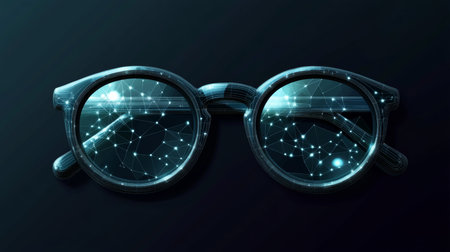Digital polygonal vector style glasses featuring abstract network design for futuristic concepts.