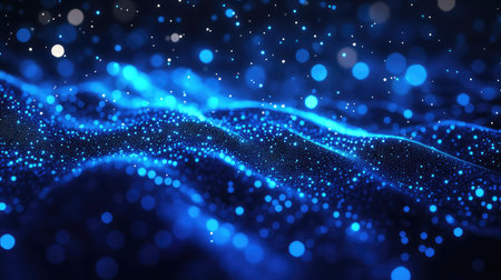 Abstract ocean wave background with glowing particles and bokeh