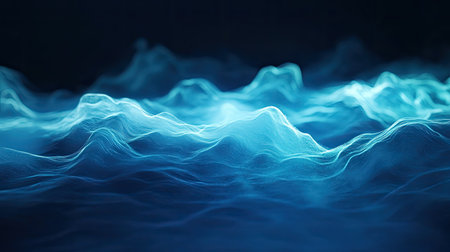 Abstract blue digital waves forming a glowing landscape