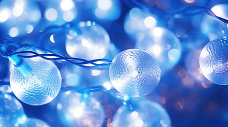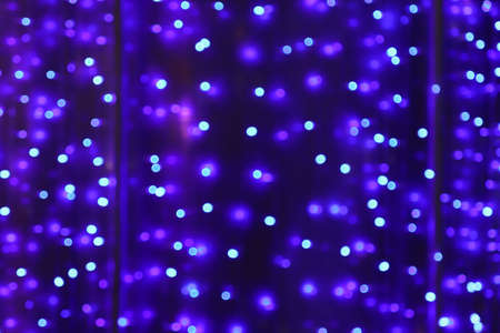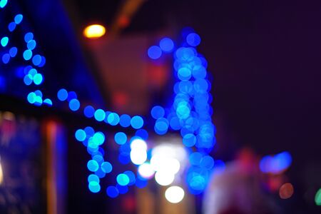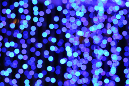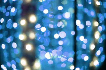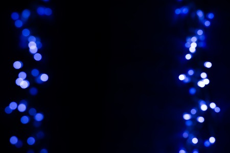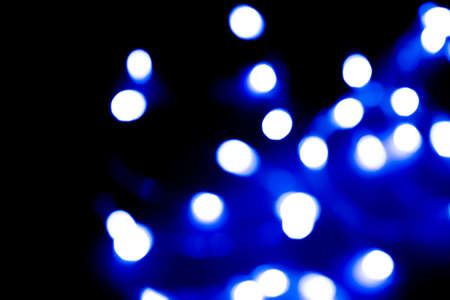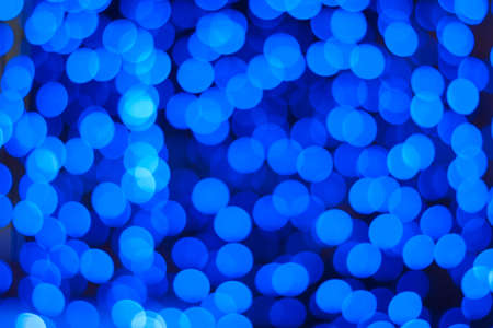 bright blue lights bokeh effect from festive garland light unfocused blurred abstraction