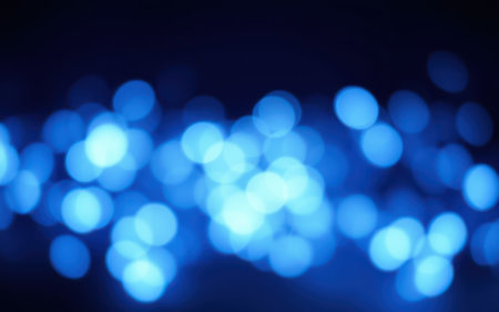 Abstract blurred background, blue defocused lights Bokeh on black background, glittering circle pattern