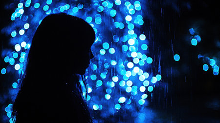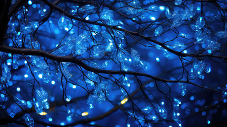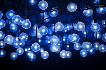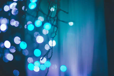 Colorful blue bokeh lights create a dreamy atmosphere in an evening celebration or festive setting