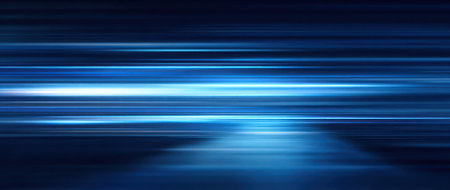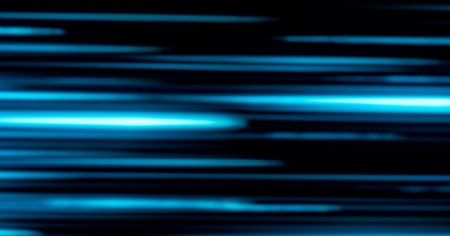This image features glowing blue light streaks against a dark backdrop. The streaks are horizontal and suggest rapid motion and energy. The composition is simple, with a focus on the linear forms and contrasting colors. Ideal for use in designs with themes of speed, technology, and futuristic concepts, providing visual impact.