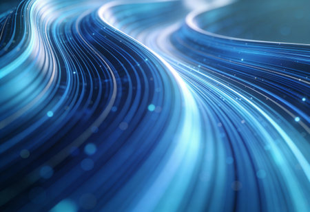 Dynamic blue lines in a sleek, abstract design against a dark backdrop, perfect for tech themes.