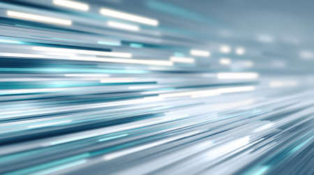 An abstract representation of blue and white light streaks suggests movement and speed, perfect for modern design projects or technology-related visuals.