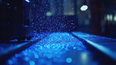 Colorful blue bokeh lights create a dreamy atmosphere in an evening celebration or festive setting