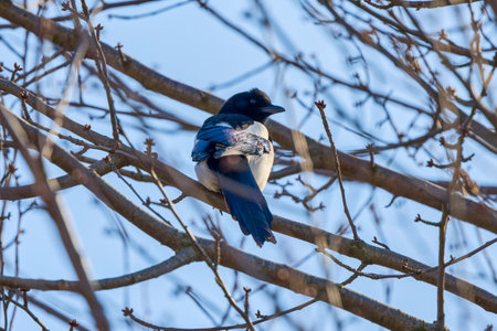 The black-billed magpie, also known as the American magpie on the tree