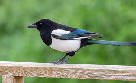 Black-Billed Magpie Perched on Wooden Fence Rail