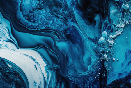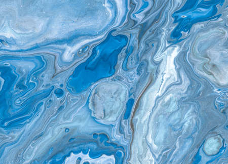 Fluid art texture. Abstract backdrop with mixing paint effect. Liquid acrylic picture with flows and splashes. Mixed paints for posters or wallpapers. Blue, navy blue and white overflowing colors