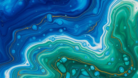 Abstract art with blue paint background, featuring liquid fluid strokes and grunge textures. A captivating blend of colors evoke a sense of movement and depth.