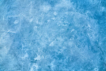 Ice blue background with ice skating tracks. Covered with a thin layer of snow. Rink. Frozen water, sea. Frosty ice texture with scratches in winter.