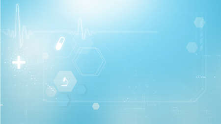 Medical blue banner with stethoscope, pills, capsules and place for text or copy space. Banner